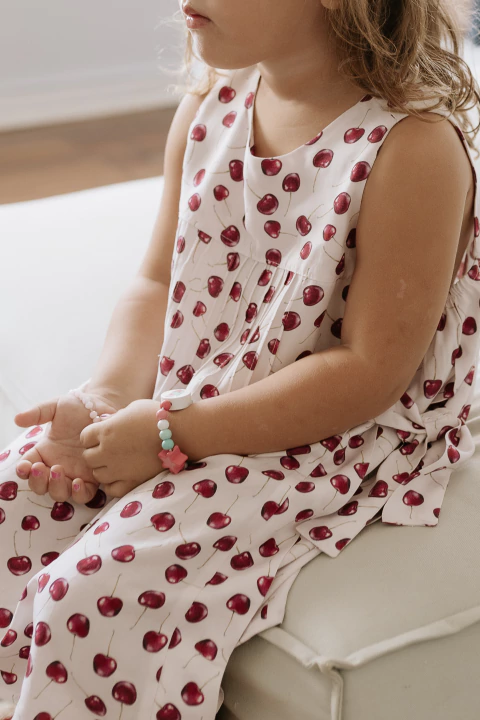 O vestido Kids é confeccionado em viscose. Possui modelagem ampla, frente plissada, manga regata e laços laterais.